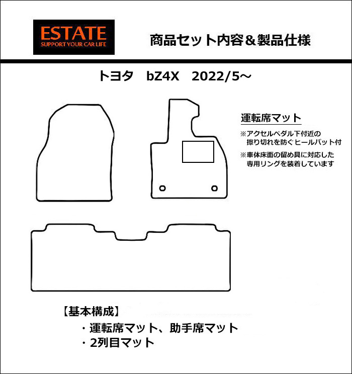 商品番号: bZ4X ナチュラルシリーズ 送料無料 NEW!! こだわりのフロアマットなら当店で!トヨタ bZ4X bz4x フロアマット カーマット ナチュラルシリーズ 車種名商品名 トヨタ bZ4X ナチュラルシリーズ 年式 2022/5〜 型式 YEAM15 XEAM10 商品構成 運転席1枚、助手席1枚、リア1枚 計3枚セット ※純正留め具対応のリング付 ※2025年10月マイナーチェンジモデル対応! 価格:11,000円(税込) カートに入れる ITEM information シーンを選ばない自然体。 スタンダード・ループの2種類があるナチュラルシリーズは、無駄のないシンプルなデザインが特長で、どのシーンでもご使用いただけます。裏素材はスタンダードブラック・ベージュがフェルト、スタンダードダークグレーがスパイク加工で、滑り止め、遮音効果は抜群です。ループブラックはフェルトで特殊加工を施しており、軽量で吸音効果に優れます。 COLOR variation ▼サンプルマットのご請求はこちらから▼ 商品情報(ご希望のオプションをお選びください) マットカラー:ナチュラルシリーズ ▼選択してください スタンダードブラックスタンダードダークグレースタンダードベージュループブラック ヒールパット ▼選択してください ありなし オプションロック糸 ▼選択してください 標準ロック糸(マットと同色)1:ブラック2:ブラウン3:カーキ4:グレー5:ライトグレー6:スーパーシルバー7:ベージュ8:アイボリー9:レッド10:ローズレッド11:ピンク12:ホットピンク13:コーラル14:オレンジ15:イエロー16:ネイビーブルー17:ロイヤルブルー18:スカイブルー19:ライトグリーン20:パープル21:バイオレット22:ホワイト23:グリーン24:バーガンディ25:ゴールド 5営業日以内で発送いたします。 価格:11,000円(税込) カートに入れる 前のページへ 次のページへ 一覧へ戻る
