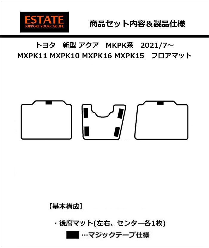 商品番号: 新型 アクア MXPK系 リアのみ ラバーマット 送料無料 こだわりのフロアマットなら当店で!トヨタ 新型 アクア リアのみ ラバーマット 防水 フロアマット カーマット 車種名商品名 トヨタ 新型 アクア ラバーマット 年式 2021/7~現行 2025年9月一部改良モデル対応! 型式 MXPK11 MXPK10 MXPK16 MXPK15 2WD・4WD(E-Four)共通 商品構成 後席3点 ※ロック糸はブラックのみとなります。 価格:8,800円(税込) ITEM information 耐水性抜群!丸ごと洗えるマット。 ラバー素材で作られた、耐久性や耐水性も抜群のカーマットです。万が一飲み物をこぼしたとしても、丸ごと洗ってきれいにできるため、衛生面でも安心。もちろん、防滑加工も施しており、軽量で取り扱いも簡単です。 COLOR variation 5営業日以内で発送いたします。 価格:8,800円(税込) ※在庫切れです 前のページへ 一覧へ戻る